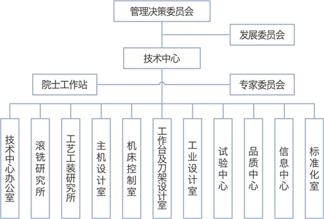 建立了管理決策委員會、發(fā)展委員會、技術(shù)中心、中心辦公室及專家委員會、專業(yè)研究室(院士工作站、滾銑研究所、工藝工裝研究所、主機(jī)設(shè)計(jì)室、機(jī)床控制室、工作臺及刀架設(shè)計(jì)室、工業(yè)設(shè)計(jì)室、標(biāo)準(zhǔn)化室、試驗(yàn)中心、品質(zhì)中心、信息中心)、職能部門、生產(chǎn)部門責(zé)任明確的科技管理體系;建立了技術(shù)例會制度,及時解決科研工作中存在的問題,有力地推動了公司科技創(chuàng)新工作有序、高效運(yùn)行。