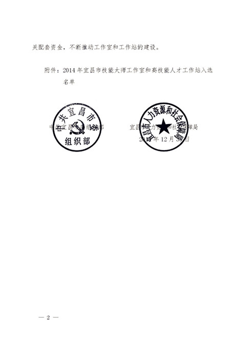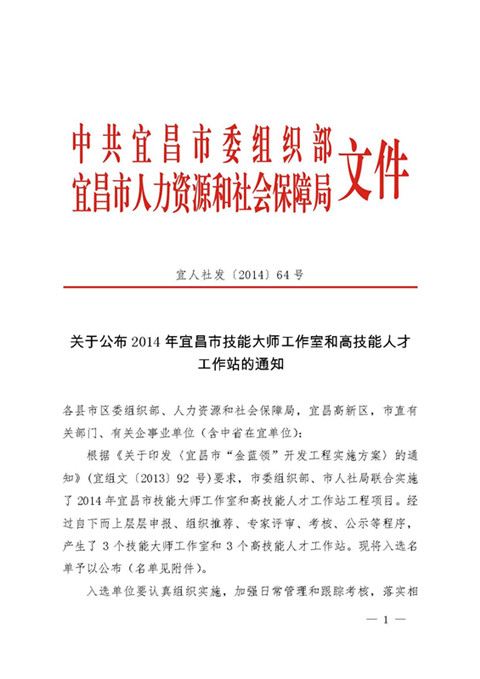 熱烈祝賀宜昌長(zhǎng)機(jī)科技有限責(zé)任公司入選2014年度宜昌市高技能人才工作站