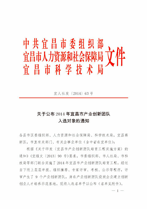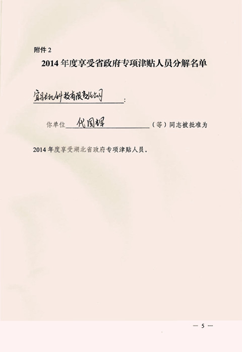 宜昌長機科技公司代國輝同志被批準為2014年度享受湖北省政府津貼人員