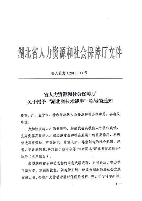 熱烈祝賀宜昌長機科技公司王濤同志獲湖北省技術(shù)能手榮譽稱號