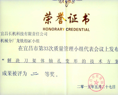 宜昌長(zhǎng)機(jī)科技公司精益QC小組、龍銑QC小組榮獲市第三十三次QC小組成果發(fā)布二等獎(jiǎng)