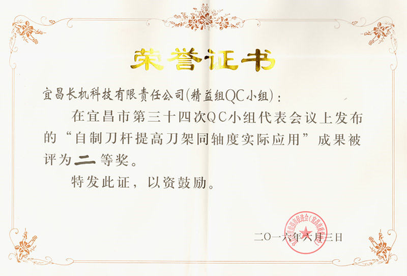 公司機(jī)械分廠精益組QC小組在宜昌市第三十四次QC小組代表會議上發(fā)布的“自制刀桿提高刀架同軸度實(shí)際應(yīng)用”成果榮獲二等獎(jiǎng)。