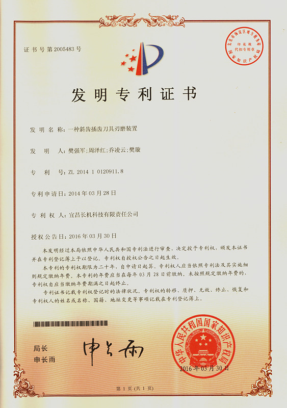 公司“用于回轉(zhuǎn)工作臺(tái)的工件自動(dòng)夾緊裝置”、“插齒機(jī)側(cè)向精度調(diào)節(jié)裝置”和“一種斜齒插齒刀具刃磨裝置”獲發(fā)明專利,按公司規(guī)定,獎(jiǎng)勵(lì)三項(xiàng)專利發(fā)明人各8000元以資鼓勵(lì)。
