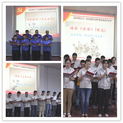 接下來(lái)進(jìn)入到了朗誦環(huán)節(jié),制造中心一黨支部、二黨支部帶來(lái)了詩(shī)歌朗誦《偉大的黨》、供銷中心黨支部朗讀了習(xí)主席在5月14日“一帶一路”國(guó)際合作高峰論壇開(kāi)幕式上發(fā)表的主旨演講《攜手推進(jìn)“一帶一路”建設(shè)》(節(jié)選),研發(fā)中心黨支部全體黨員朗誦了經(jīng)典《論語(yǔ)》精選。