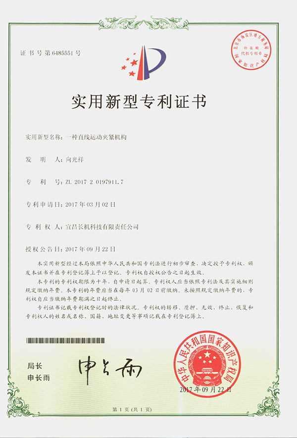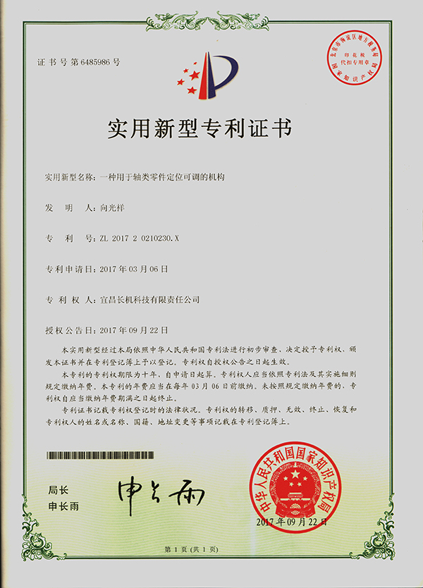 公司“一種插齒機(jī)刀架體前后擺動導(dǎo)向機(jī)構(gòu)”榮獲發(fā)明專利,“一種旋轉(zhuǎn)分度后的夾緊機(jī)構(gòu)”、“一種直線運動夾緊機(jī)構(gòu)”、 “ 一種用于軸類零件定位可調(diào)的機(jī)構(gòu)”等榮獲實用新型專利。