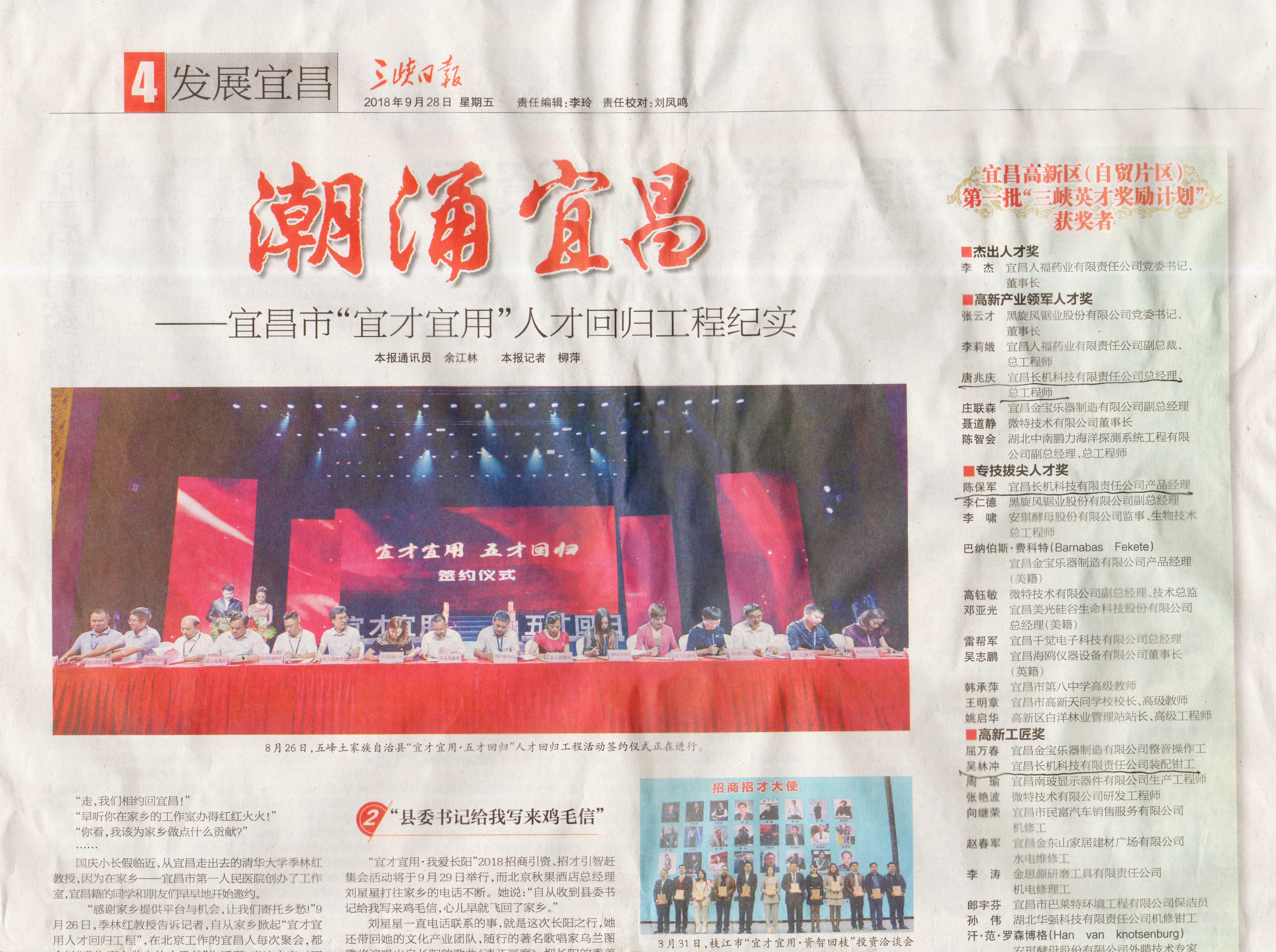 熱烈祝賀公司唐兆慶、陳保軍、吳林沖等三位同志入選宜昌高新區(qū)第一批“三峽英才獎勵計劃”工程