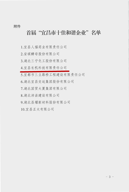 公司獲“宜昌市十佳和諧企業(yè)”榮譽(yù)