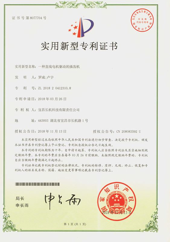 公司獲一項發(fā)明專利、兩項實用新型專利