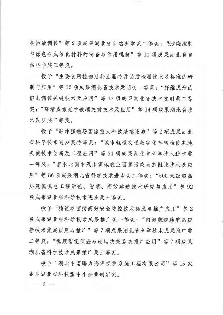公司科技成果榮獲“湖北省技術發(fā)明獎二等獎”