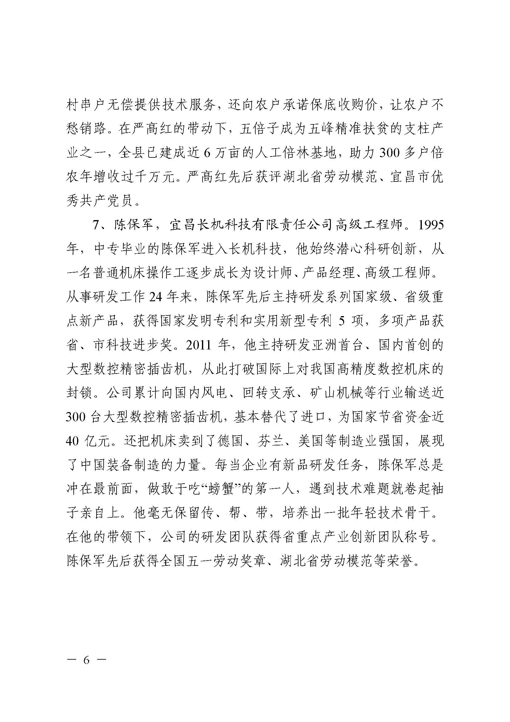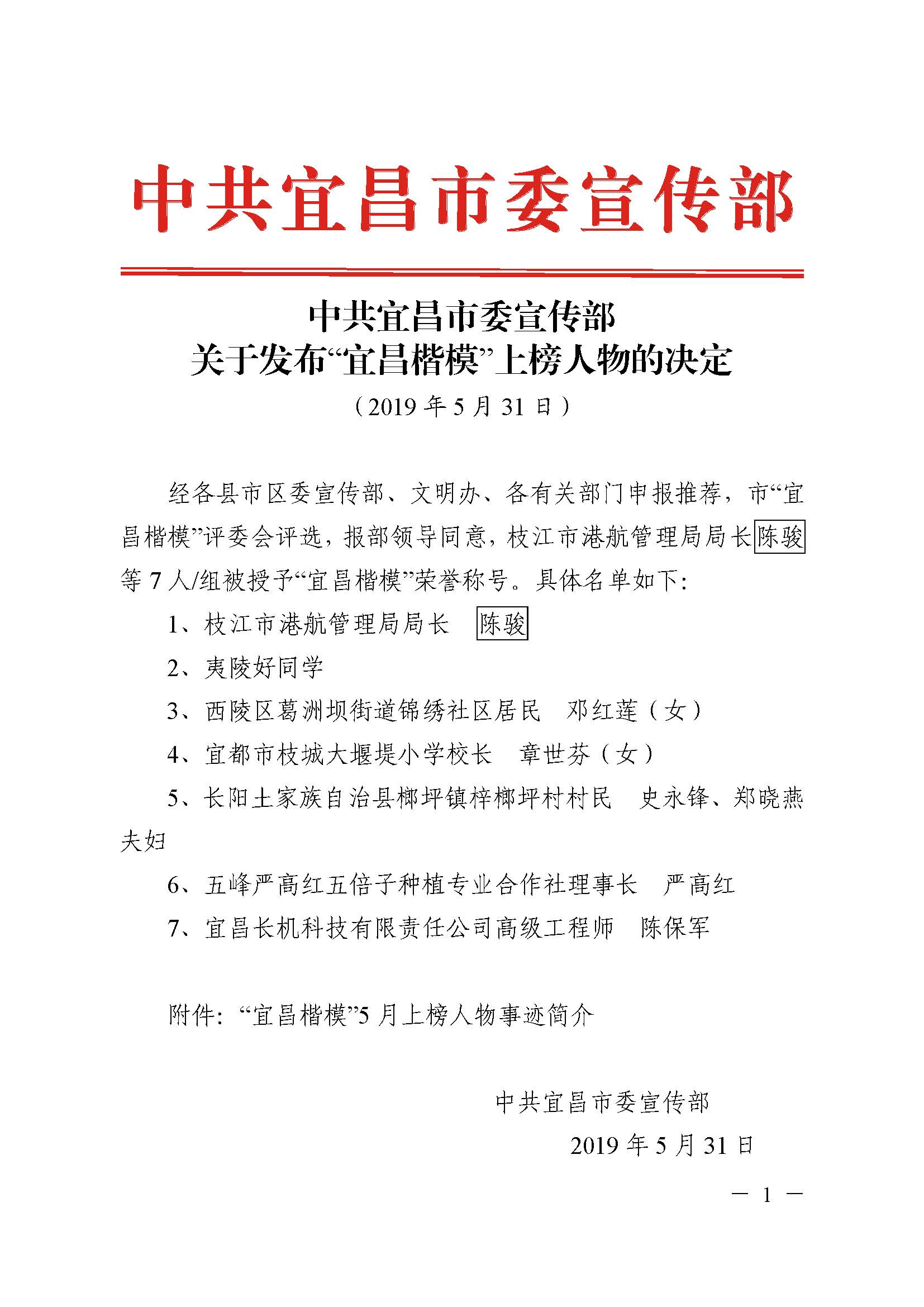 陳保軍被評為“宜昌楷模”月度上榜人物