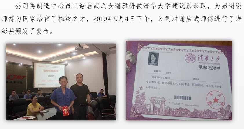 公司為謝啟武師傅頒發(fā)“為國(guó)育才貢獻(xiàn)獎(jiǎng)”