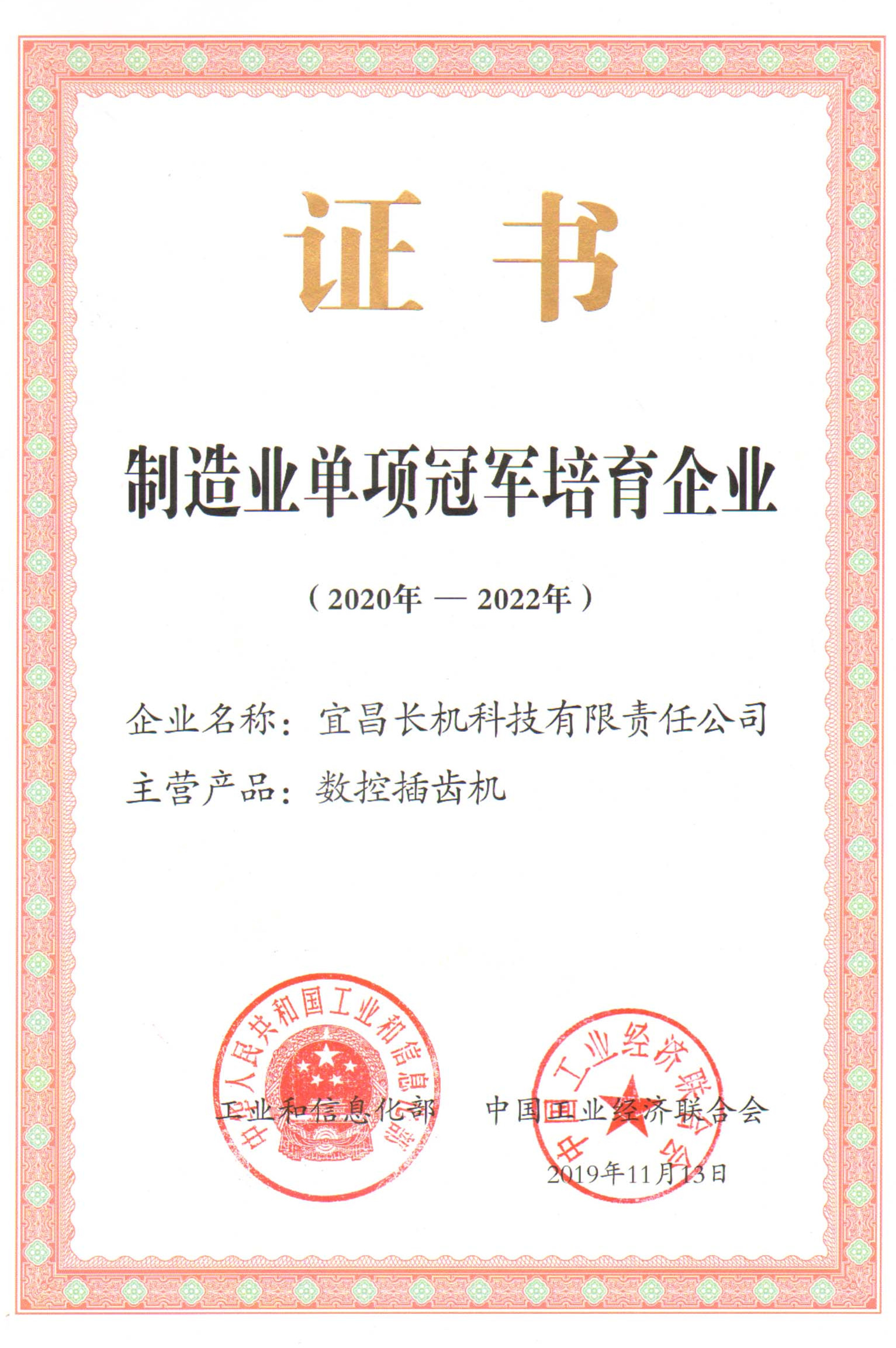 公司通過“制造業(yè)單項(xiàng)冠軍培育企業(yè)”復(fù)審,再次榮獲由工業(yè)和信息化部、中國工業(yè)經(jīng)濟(jì)聯(lián)合會(huì)授予的“制造業(yè)單項(xiàng)冠軍培育企業(yè)”證書。