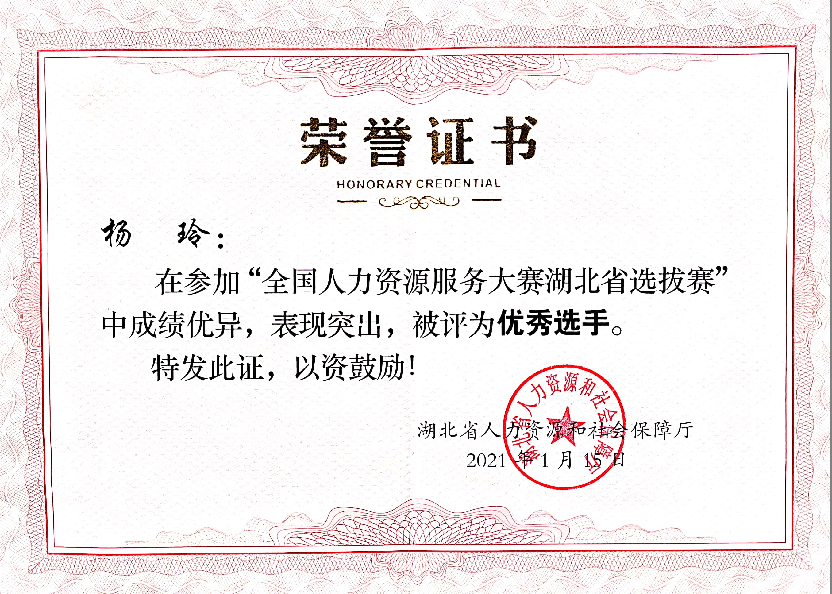 楊玲被評(píng)為”全國(guó)人力資源服務(wù)大賽湖北省選拔賽“優(yōu)秀選手