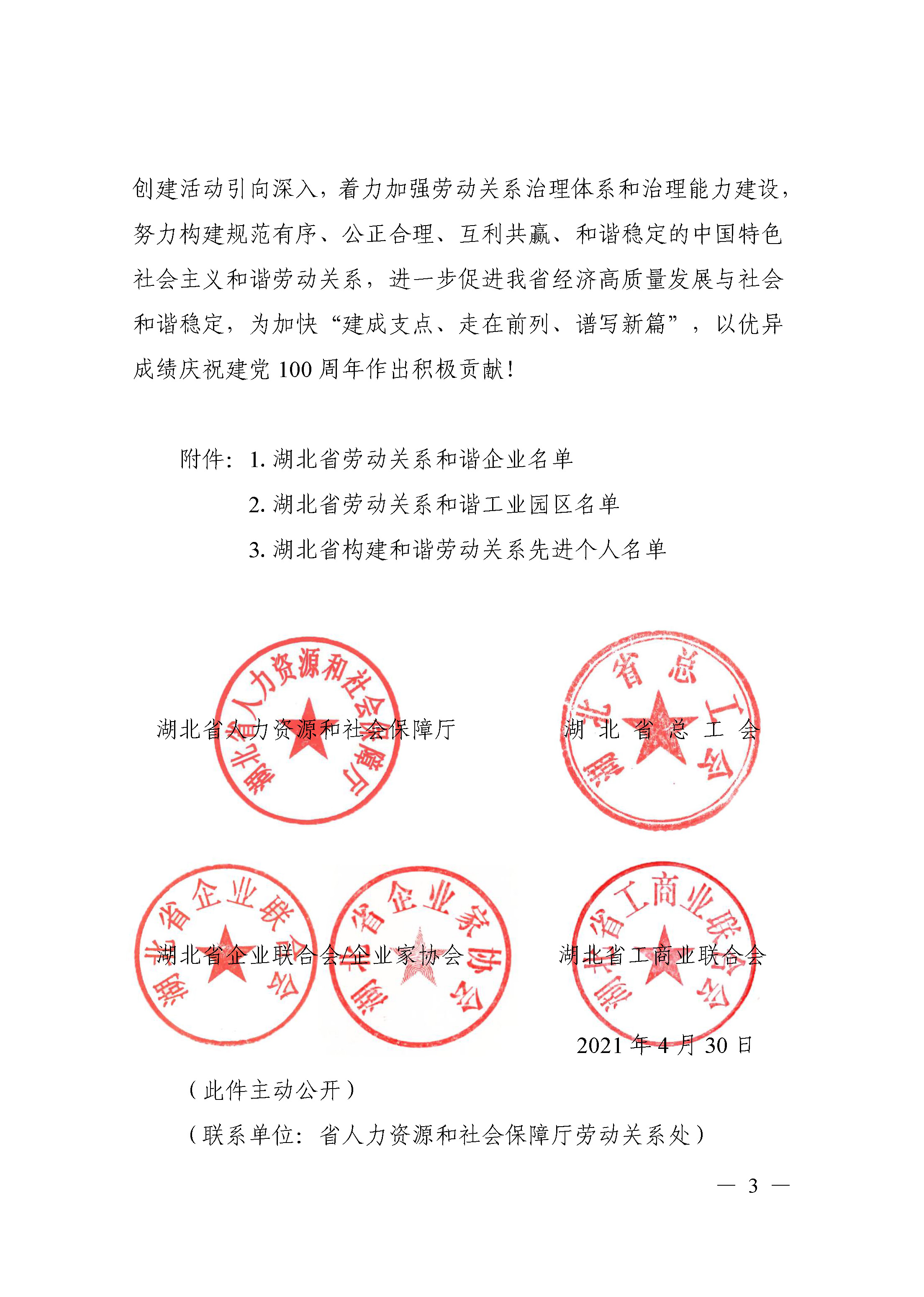 我公司被評(píng)為湖北省勞動(dòng)關(guān)系和諧企業(yè)