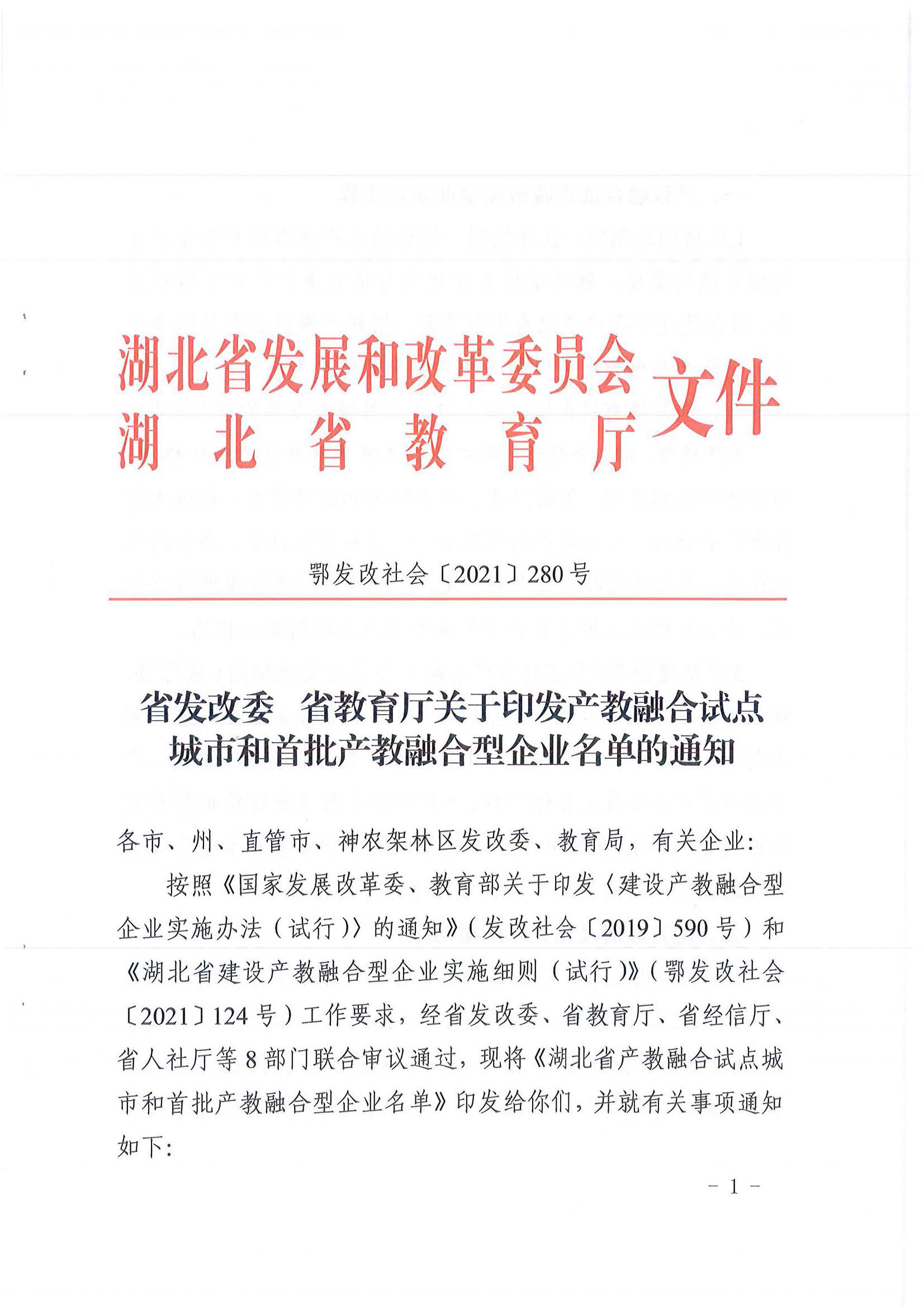 我公司被評(píng)為湖北省首批產(chǎn)教融合型企業(yè)