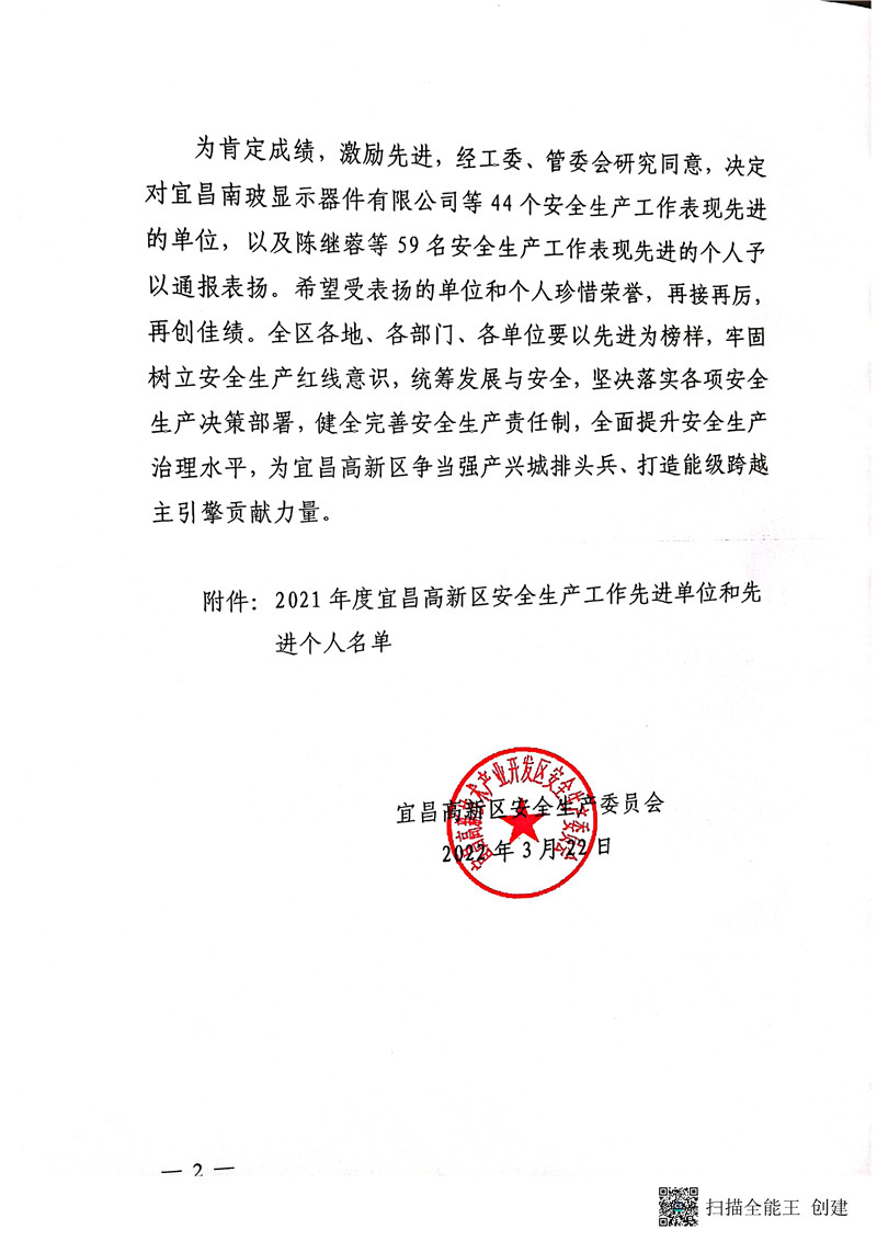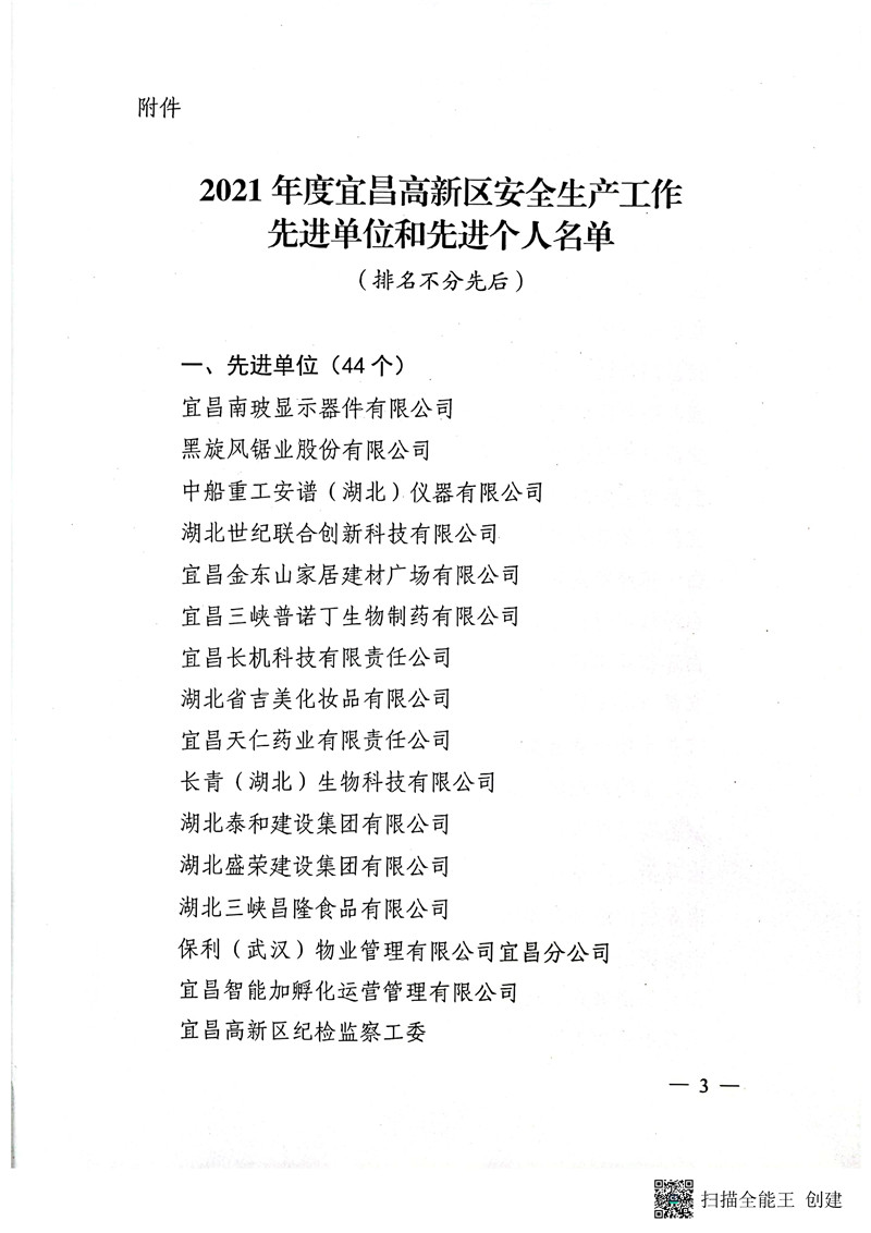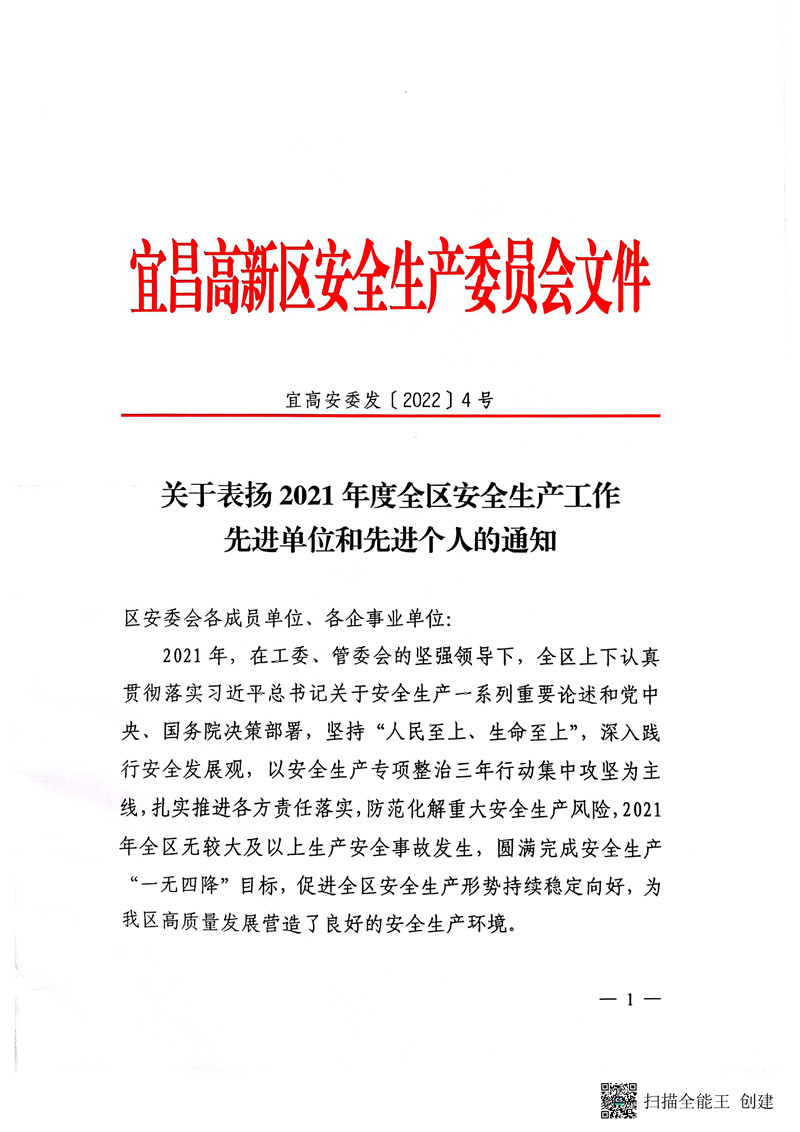 公司被評為2021年度安全生產(chǎn)工作先進單位