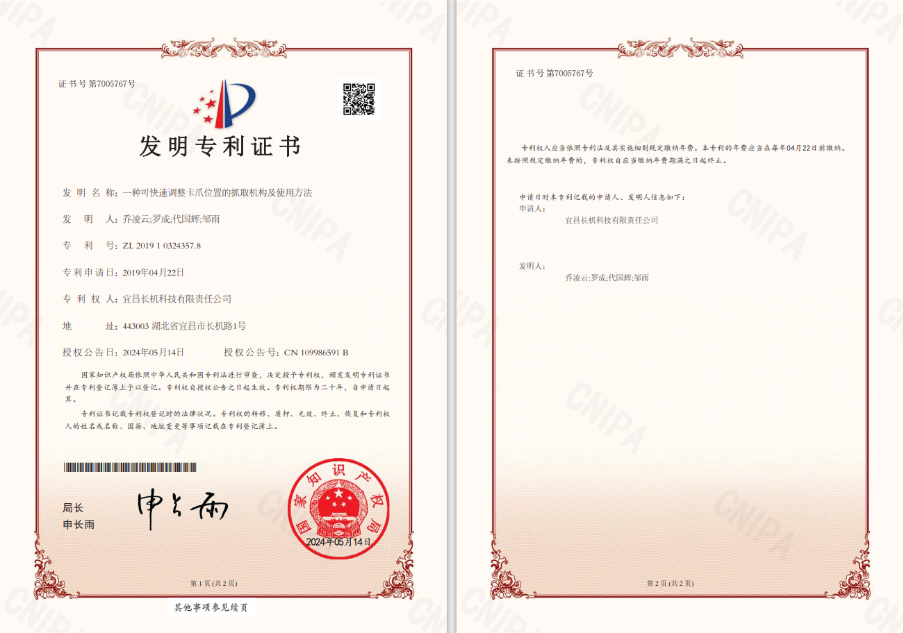 公司“一種可快速調(diào)整卡爪位置的抓取機(jī)構(gòu)及適用方法”榮獲發(fā)明專利。