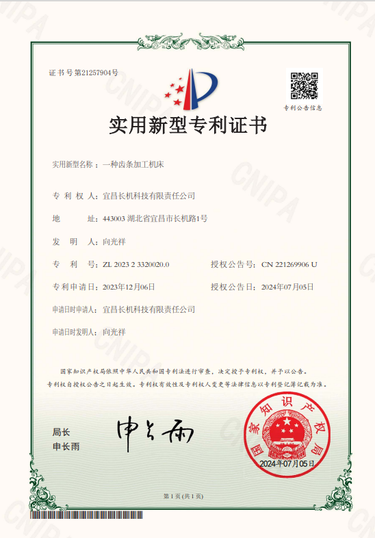 公司“一種齒條加工機(jī)床”、“用于運(yùn)動(dòng)機(jī)構(gòu)拉緊的快速連接結(jié)構(gòu)”獲得實(shí)用新型專利。