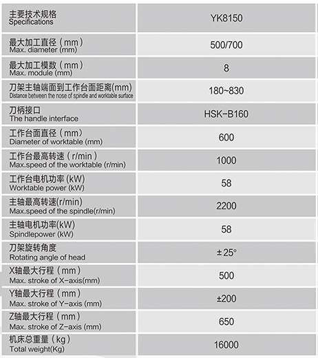 4) YK8150具備自動(dòng)換刀功能,實(shí)現(xiàn)粗、精加工自動(dòng)轉(zhuǎn)換,降低刀具成本;