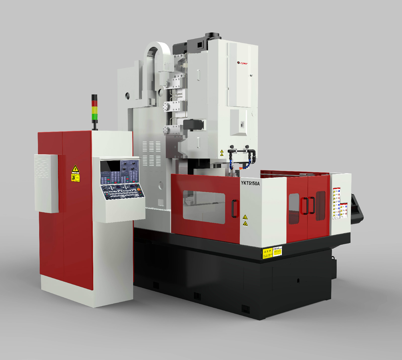2.機床具備刀具提拉功能、工作臺采用滾動軸承定心。主運動由交流變頻電機驅(qū)動,切削時通過交流伺服電機驅(qū)動立柱移動實現(xiàn)徑向進給;因機床具備刀架提拉機構(gòu),特別適合加工深孔內(nèi)齒,同時大幅提升雙聯(lián)齒輪及不同齒厚的內(nèi)、外齒加工效率。可根據(jù)切削需要設(shè)置循環(huán)次數(shù)及每次循環(huán)的徑向切入量。